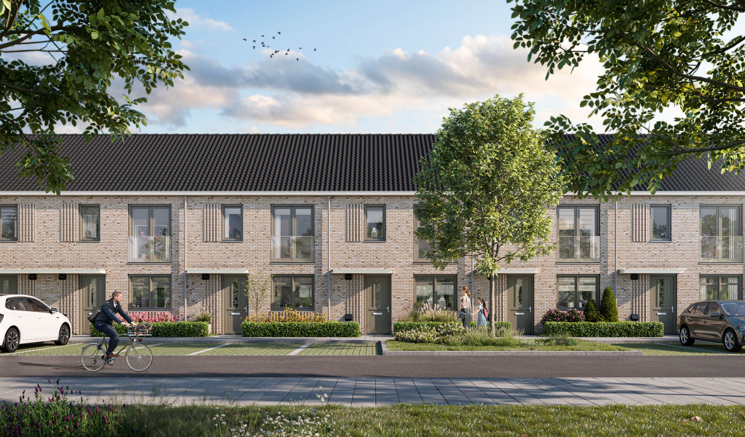De woningen zijn ontworpen door Venster Architekten en hebben een zandkleurige gevel met ribbelmetselwerk wat zorgt voor een schilderachtige aanblik van de woningen. Ook de Franse balkons, luifels en het donkere pannendak zorgen voor een luxe uitstraling.